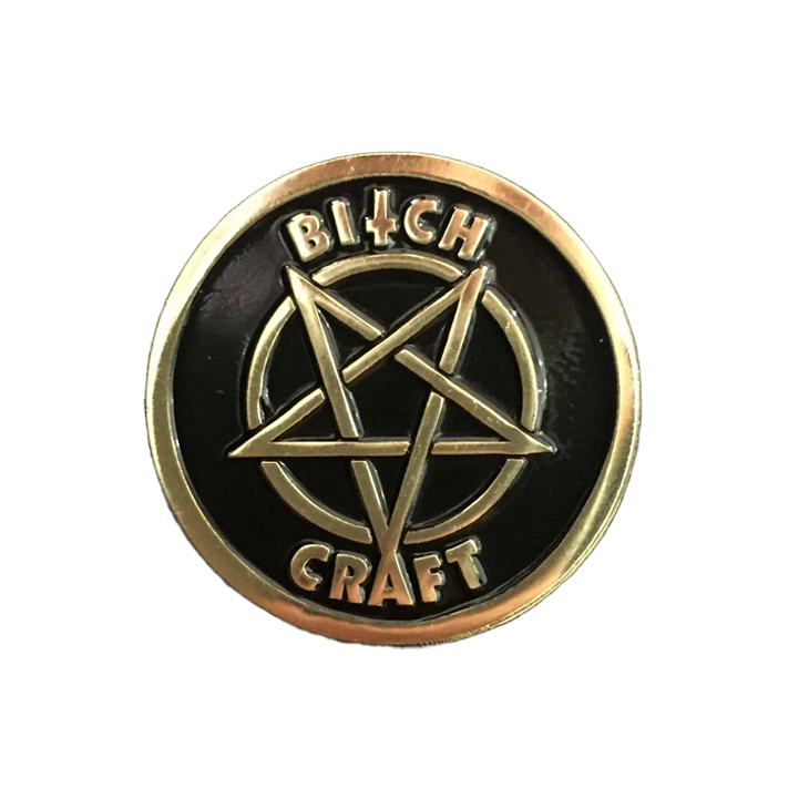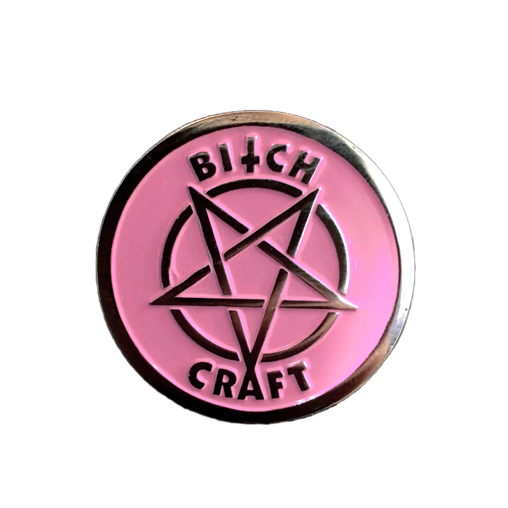 This gold plated enamel pin measures 1.25inches wide with black rubber clutches (of satan) oh and it also comes in PINK